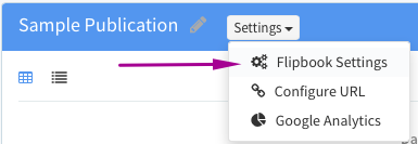 1. On your Partica dashboard, select the Flipbook Settings tab in the Settings drop down menu.
