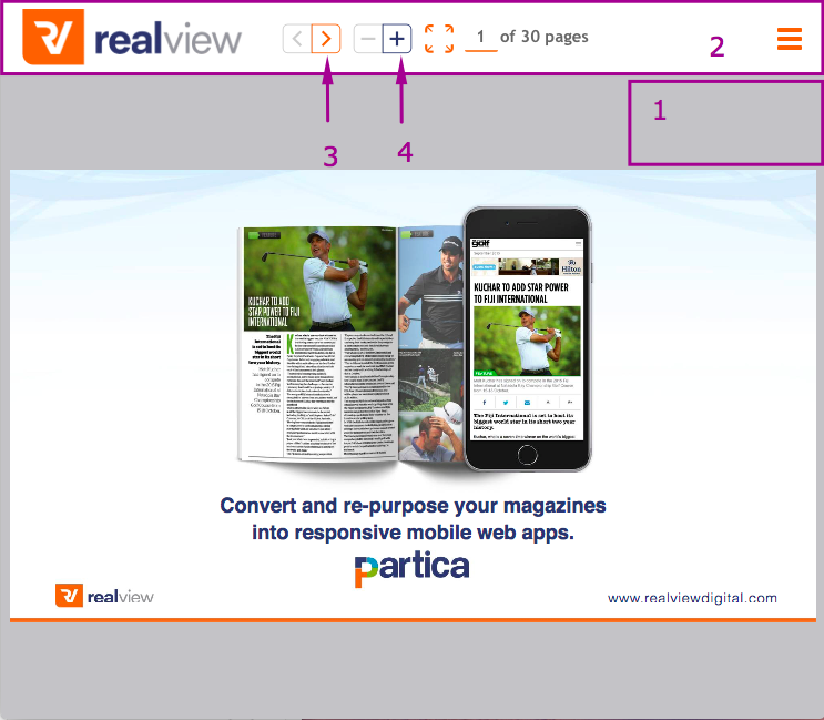 The default branding on your Flipbook is the Realview logo and colour. You can update this to display your own corporate branding.