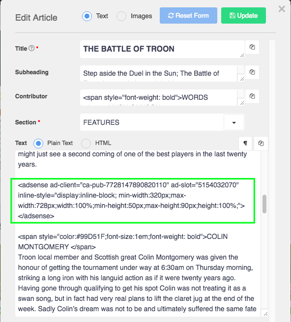 5. This HTML can now be pasted directly into an article via MANAGE ARTICLES on the Partica Dashboard.